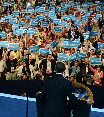 National Review’s October 1, 2012 cover features an image shot from behind Barack Obama as he delivers a speech at the Democratic National Convention in early September, 2012. The cheering crowd before him waves blue signs saying “ABORTION.”